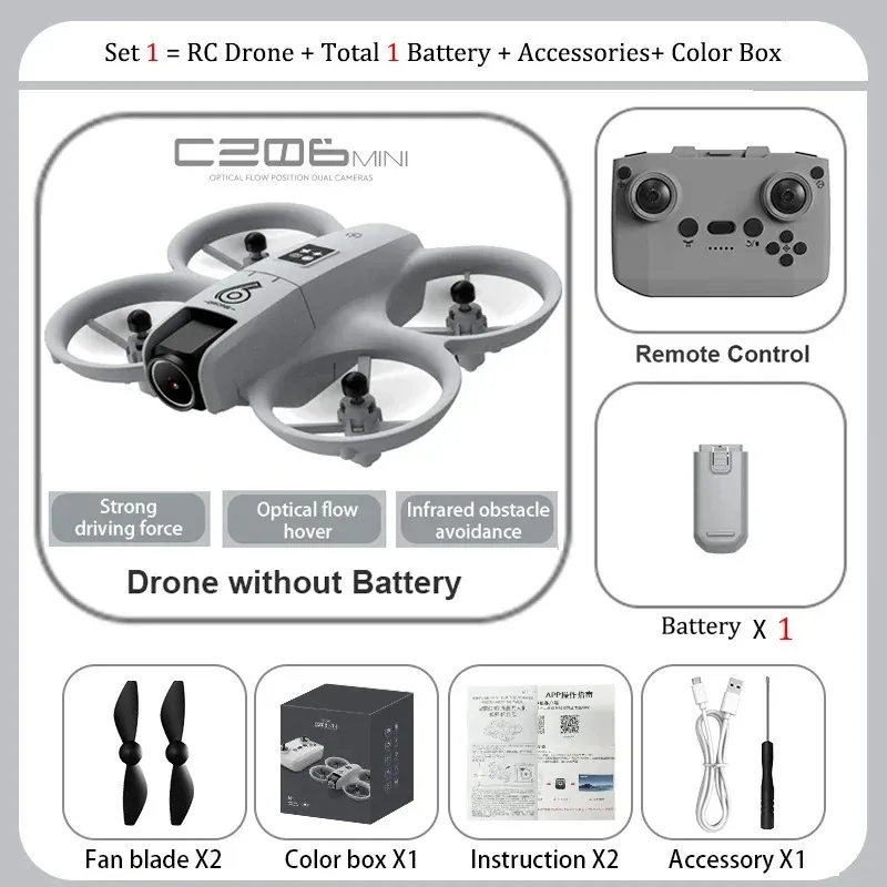 Features: Durable and Safe Design: Crafted from high-quality ABS material, ensures that your remote control drone can withstand rough landings and unexpected collisions, providing you with a longer-lasting flying experience. Exciting Movement Capabilities: This kid-friendly drone measures 5 inches and offers a variety of stunt flying options including immersive flight, cool light, perfect image, free shuttle easy release film, and infrared obstacle avoidance. An ideal gift for birthdays, Christmas, or holidays. User-Friendly Operation: Features One key dynamic flower fly, powerful performance roll-drift easy to get started in seconds. Plan the route on the APP, and the drone files along the route. Reliable 2.4GHz Radio Control: Operates on a 2.4GHz radio control system with a maximum control distance of 330 ft, offering strong anti-interference ability and enabling small group flying activities.