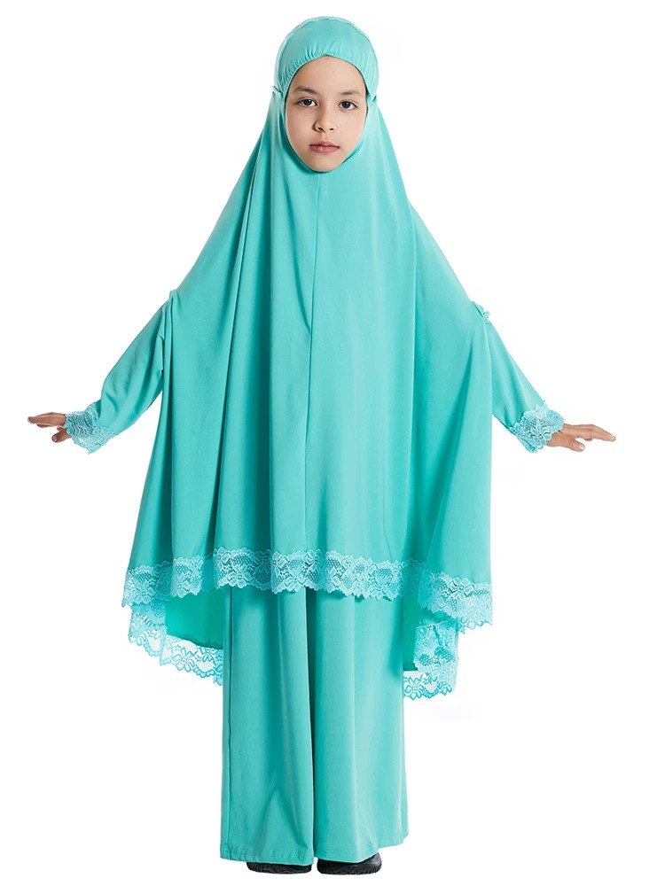 Muslim Kids Girls Hijab Dress Ramadan Khimar Skirt Set Overhead Eid Prayer Garment Burqa Abaya Robe Kaftan Hooded Gown